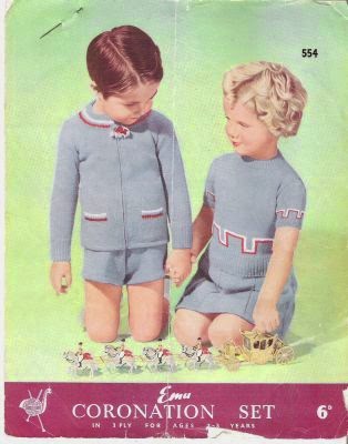 When I got home I donated a knitting pattern for a Coronation set to the Collection. The pattern had been used so some lucky boy or girl got to wear one of these in 1953.